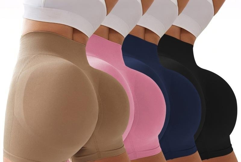 ¡Estos shorts de 4 piezas sin costuras son increíbles! Control del vientre en la cintura alta, diseño acanalado lateral y perfecto efecto levanta glúteos. Súper cómodos para llevar a diario.